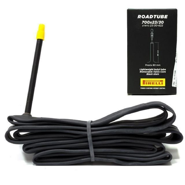 Câmera de ar para Road Bike (speed) aro 700 largura pneu de 23 a 30mm bico fino (presta) com 80mm e núcleo removível Pirelli Roadtube