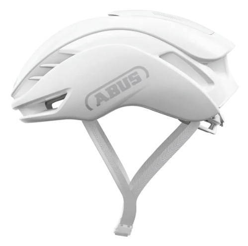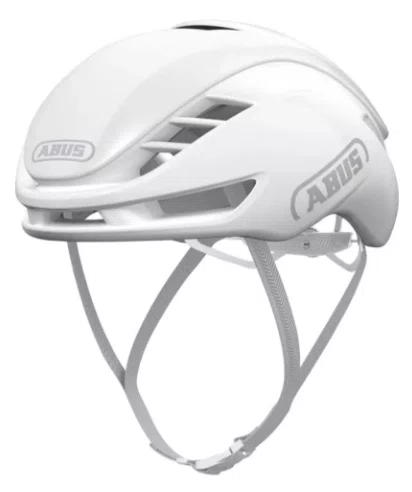 Abus GameChanger 2.0 na cor Branco Puro (Shiny White) é a escolha definitiva para quem busca o máximo em aerodinâmica com um visual clássico e limpo, que ajuda inclusive na visibilidade e no conforto térmico sob sol forte.