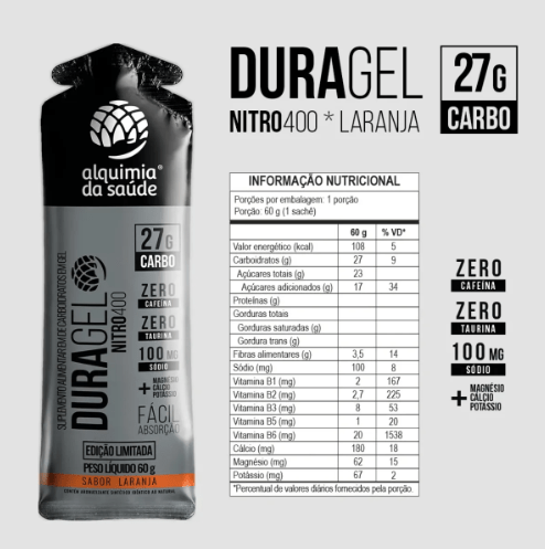 Carbo Gel Duragel 27G Carboídrato Sabor Nitro 400 Laranja