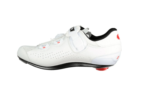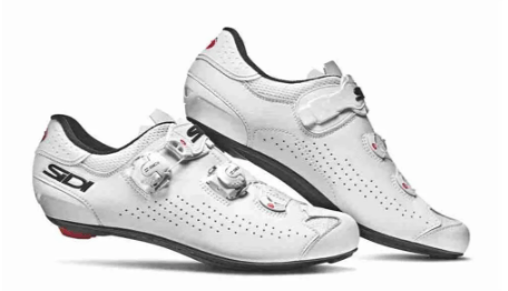 Eleve sua pedalada com as sapatilhas de estrada SIDI Genius 10. Projetadas para desempenho superior, proporcionam uma transferência de potência excepcional através de uma sola de carbono leve e rígida. O sistema Tecno-3 Push garante um ajuste preciso e facilmente ajustável em movimento, reforçada fixa o seu pé para máxima estabilidade e eficiência de pedalada. Com acabamento em couro sintético branco elegante e durável, o Genius 10 combina características de alta performance com um design visualmente deslumbrante para o ciclista exigente que busca conforto e potência