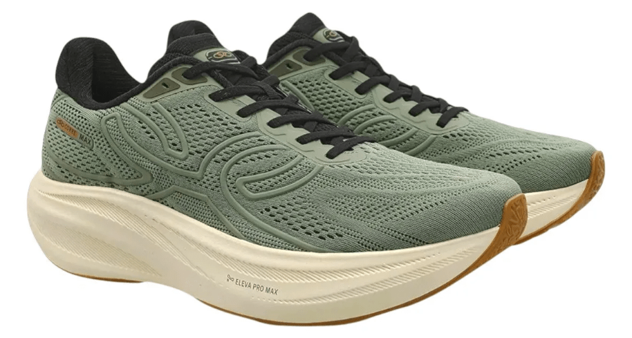Olympikus Corre Max Verde é o modelo de máximo amortecimento da linha Corre, focado em conforto e proteção para treinos de rodagem e longas distâncias. É ideal para corredores que buscam uma pisada macia e estável, sem priorizar a velocidade.